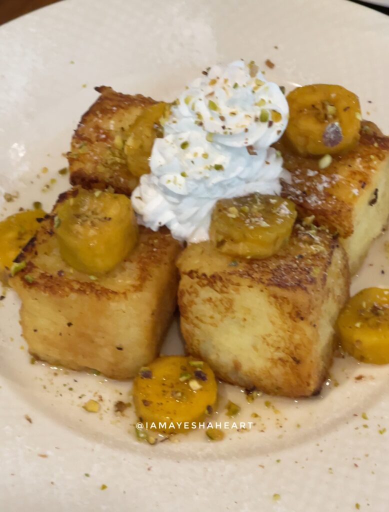 At Cafe Nieves, mornings mean waffles with sausage & eggs, French toast with caramelized bananas, or fresh salads with garlic toast 🥗🍌.